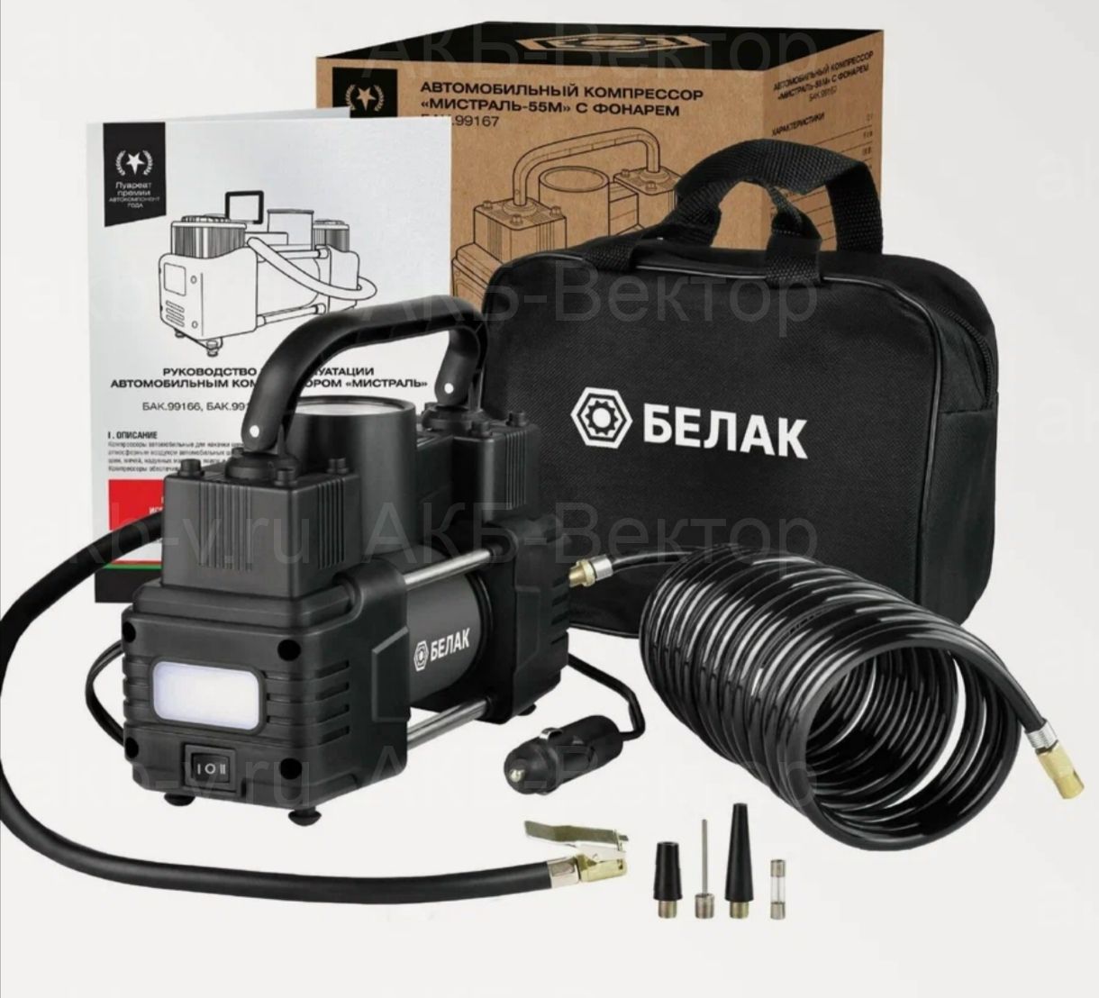 Компрессор автомобильный двухпоршневой БЕЛАК "Мистраль - 55М" 60л/мин БАК.99167