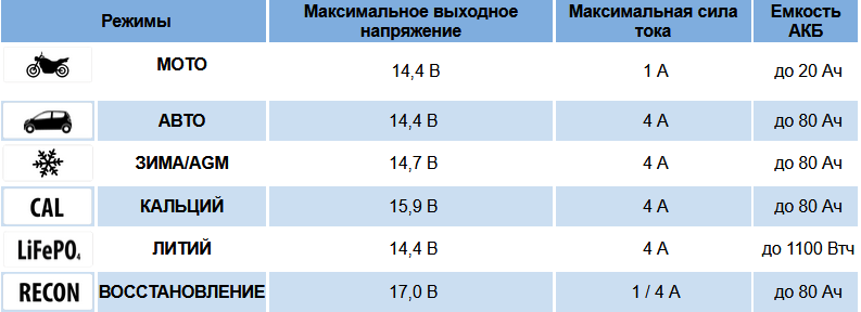 -Функция поддержания заряда малым током (можно оставлять на несколько месяцев включенным).